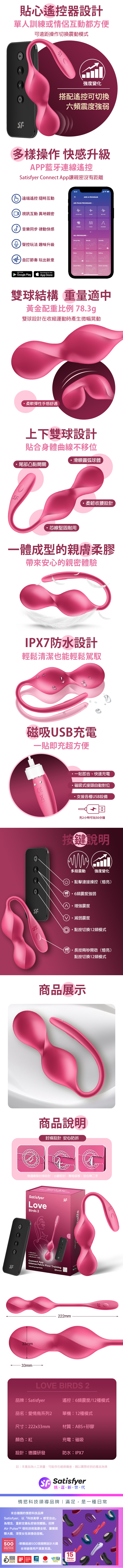 Satisfyer|Love Birds 2|愛情鳥系列 2 凱格爾智能訓練球 紅